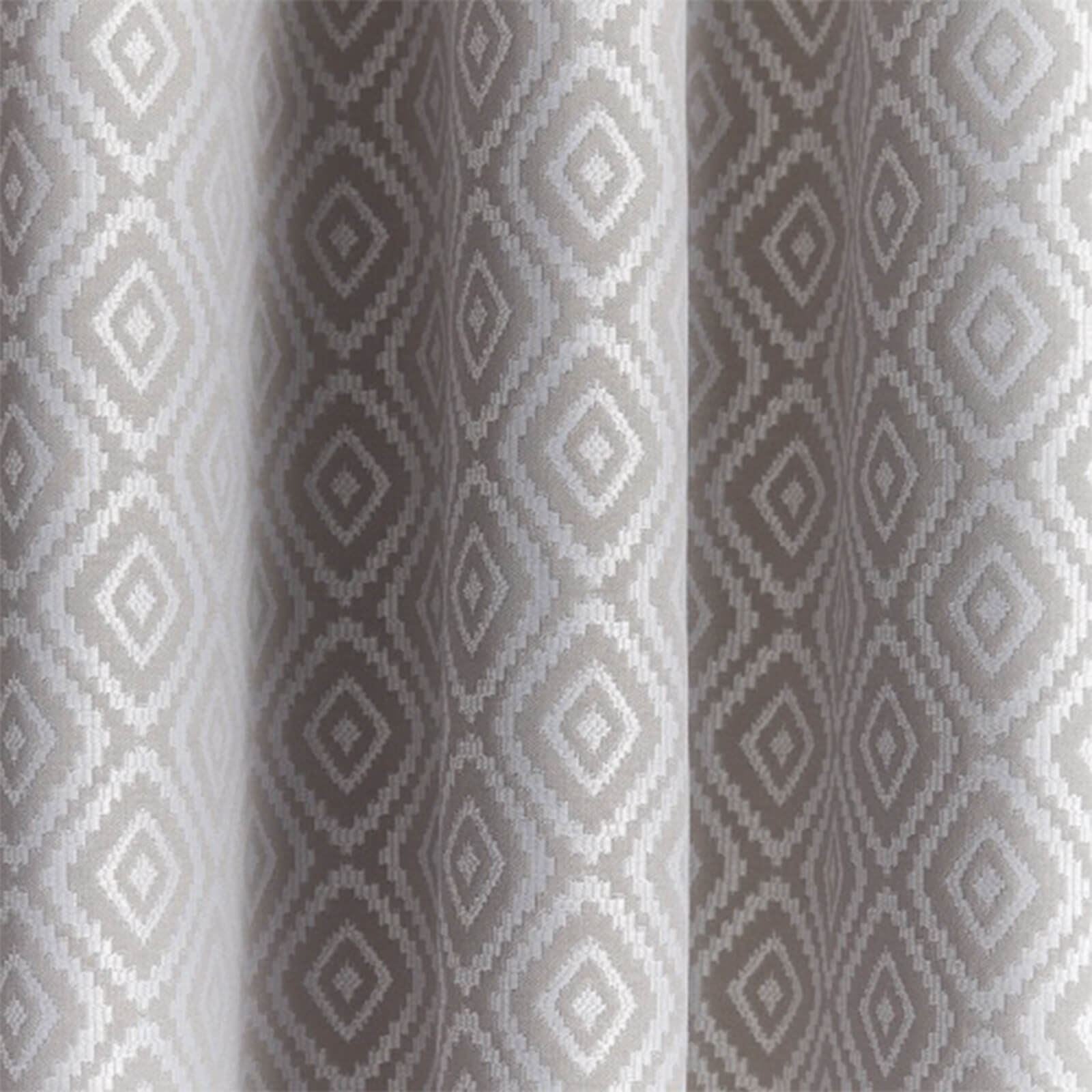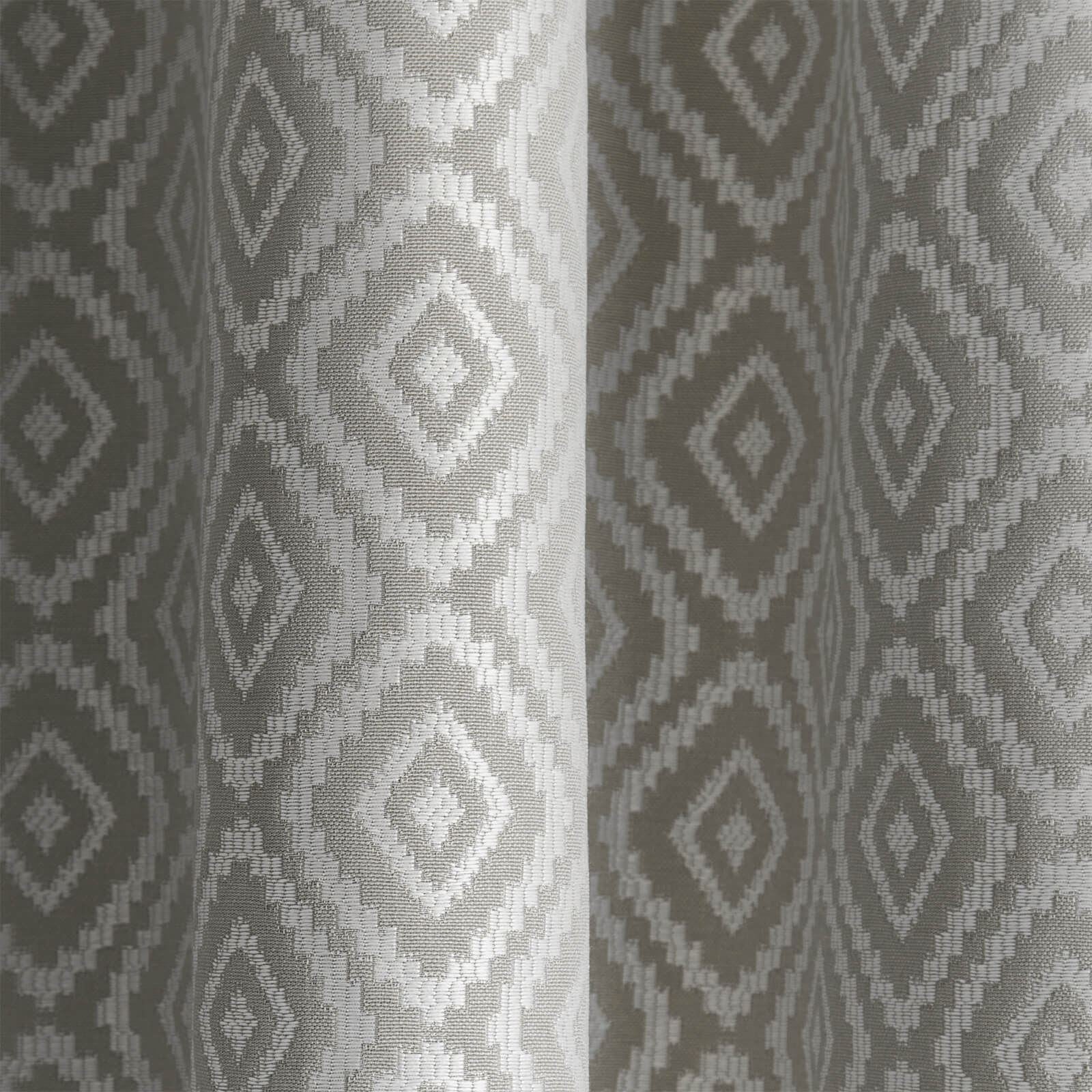 A pair of diamond Jacquard woven curtains with a grey geometric pattern. Fully lined with a easy to hang eyelet header.
