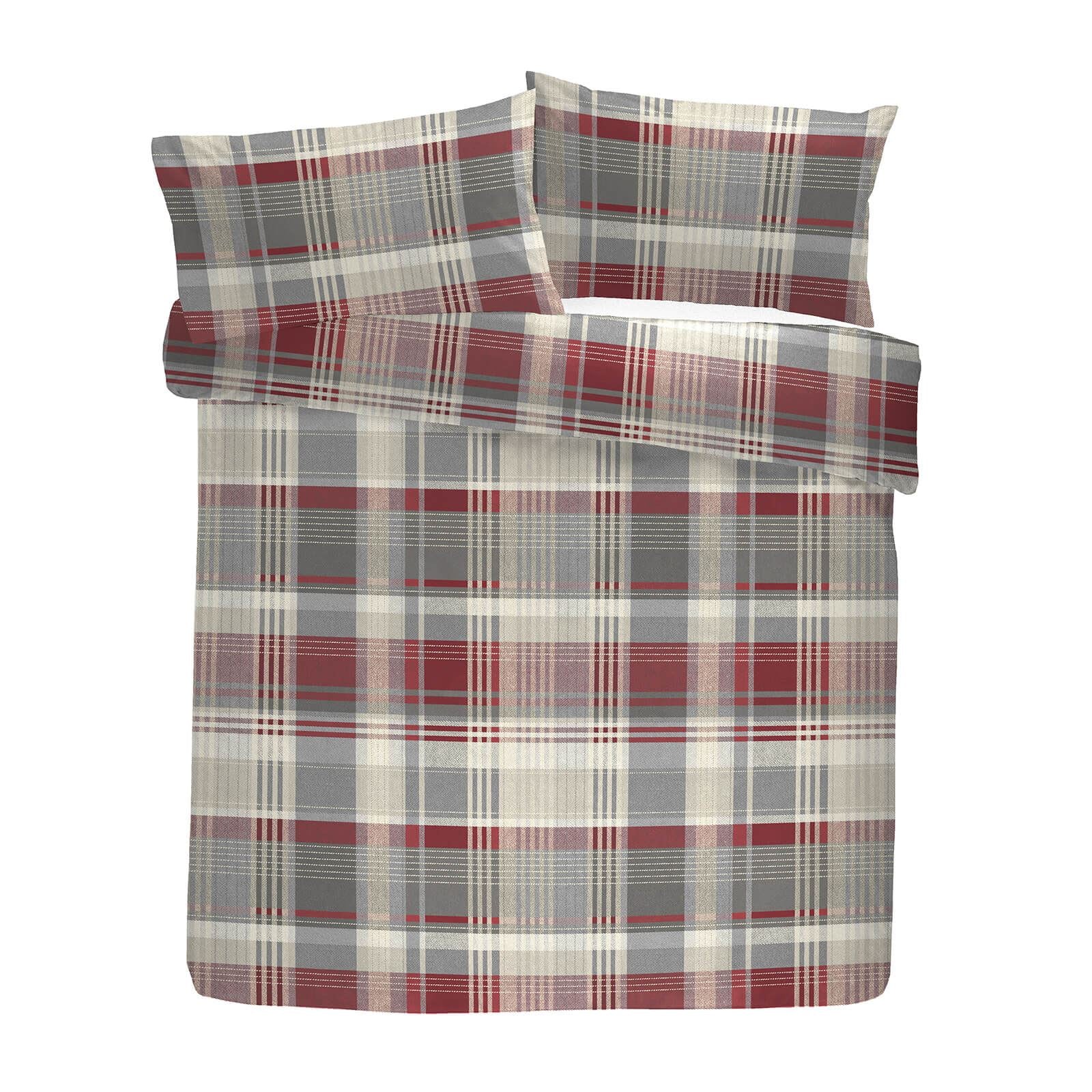 A super soft 100% brushed cotton countryside inspired bedding set. A classic red and grey design that�s reversible from country check to beautiful woodland strip Stag motifs.