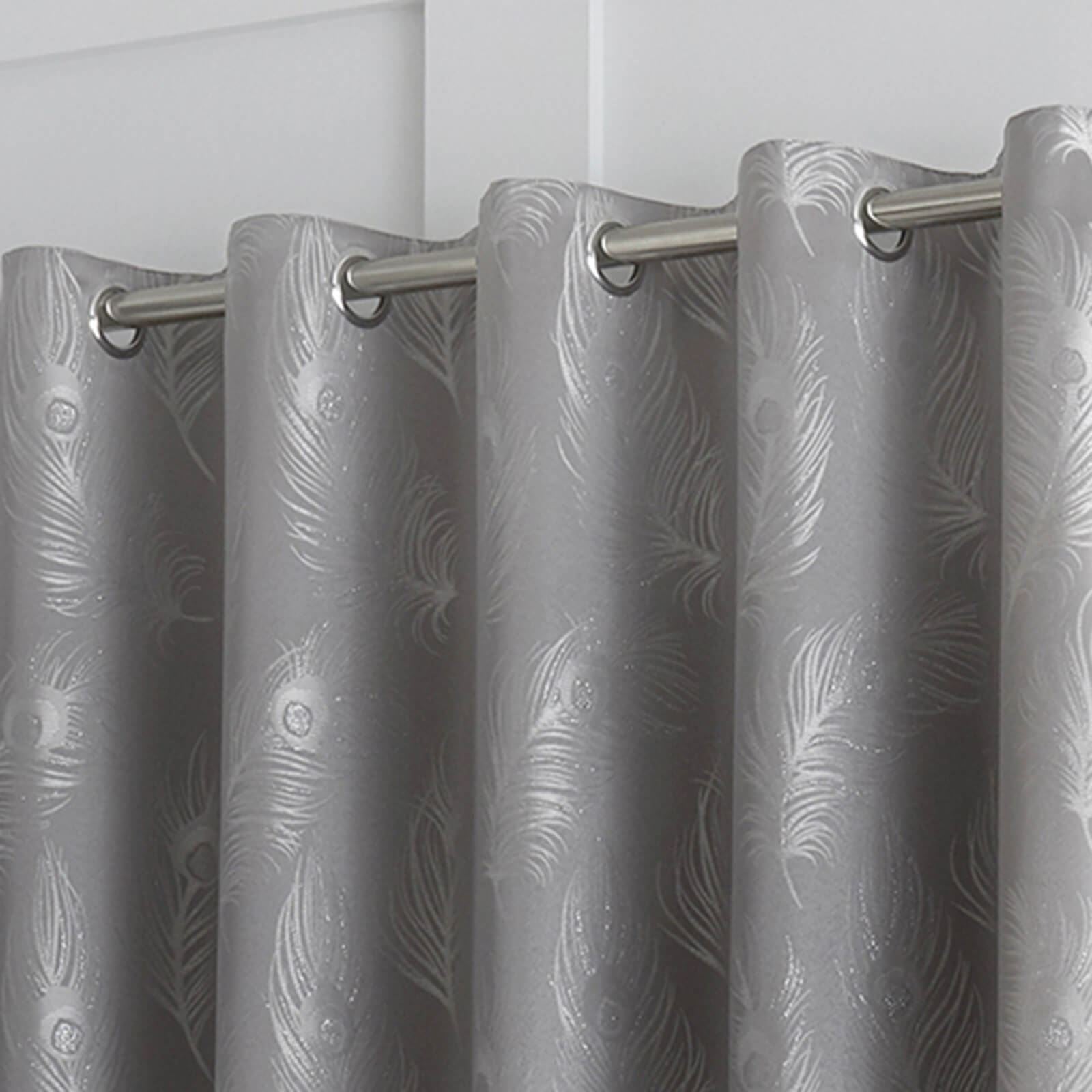 Stunning, contemporary peacock feather motifs present a delicate & striking curtain design finished in luxurious jacquard woven fabric with stunning metallic detailing for depth and texture. Fully lined and beautifully finished for a grand luxury appearance.