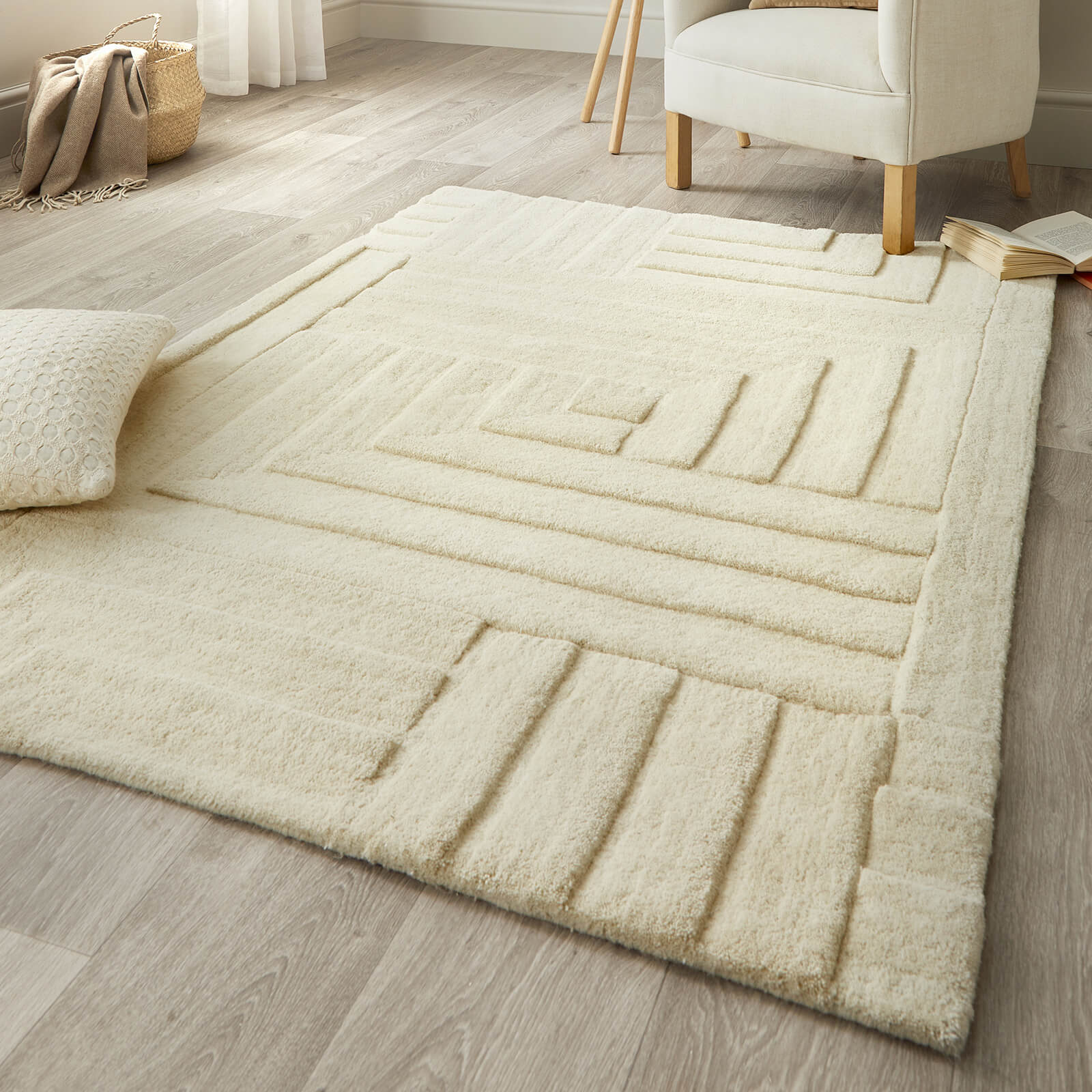 Linear Pristine White and Cream Modern Rugs