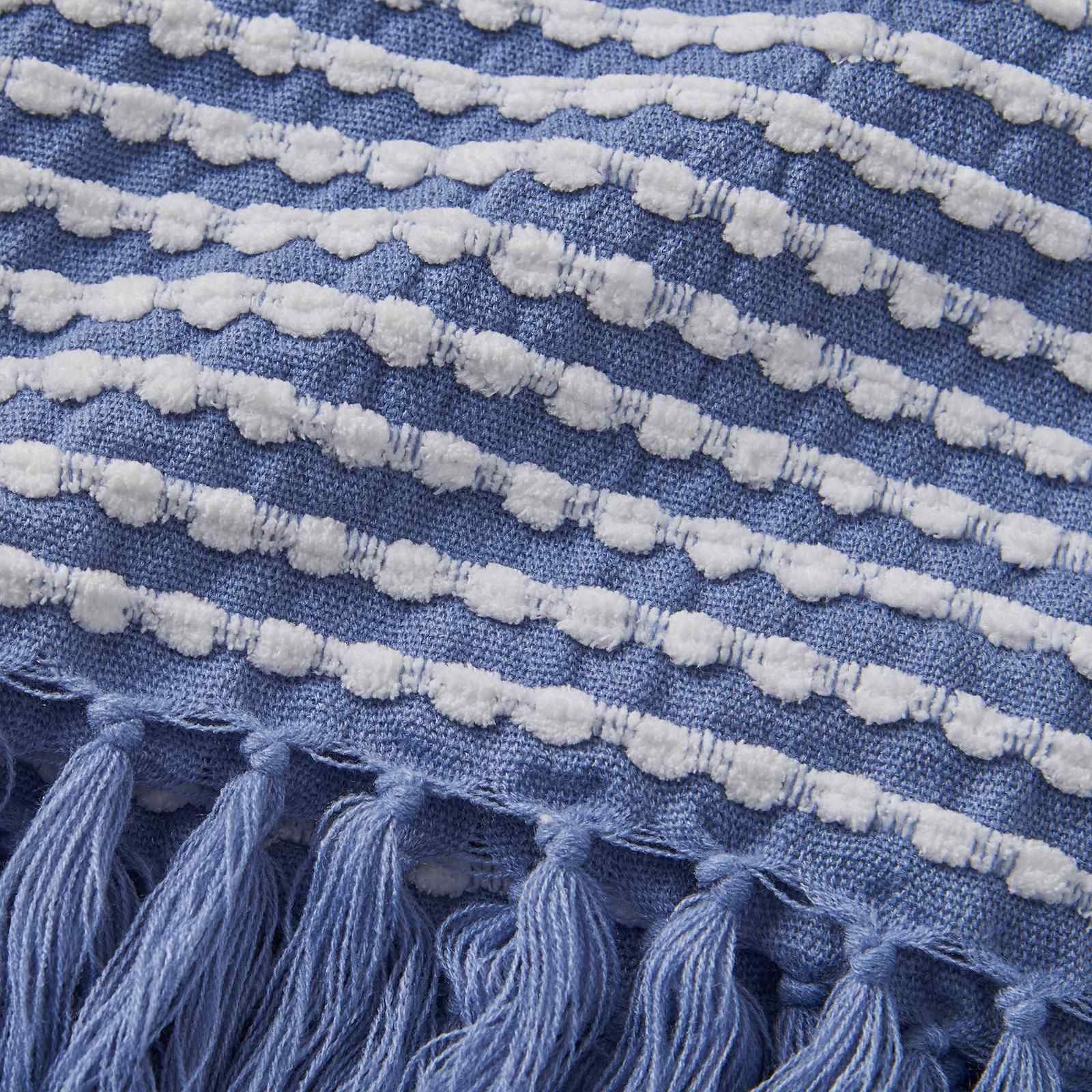 Update your home styling with this cosy stab stitch blanket in neutral tones; finished with a tasselled edging for an additional detailing . Pair with the matching cushion to complete the look.